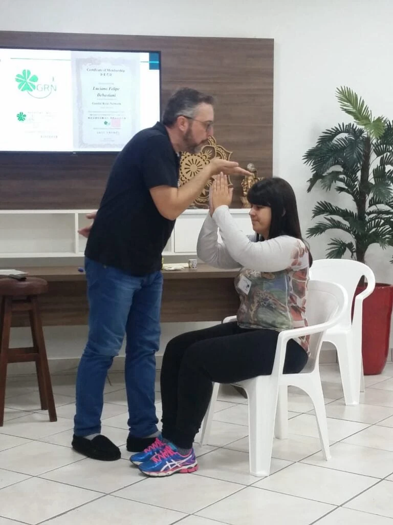 Nossa relação não termina na entrega dos certificados (são 4 ao longo da formação). A mentoria inclui suporte contínuo para orientar sua jornada muito além da sala de aula, garantindo que o Reiki se torne uma filosofia de vida integrada ao seu dia a dia.